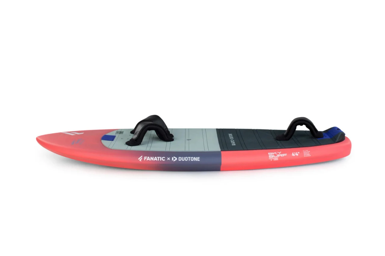 The Sky Surf TE received a complete re-design with concave rail bevels, a new outline and rocker and slightly recessed deck shape. The updated rocker line places the foil at the ideal angle of attack for early take-offs and the recessed deck shape provides extra stability while also maximizing pumping efficiency with an optimized deck angle. The pulled in tail outline and high concave bevelled rail shape allows for the most radical turns anywhere on the wave without those annoying touch downs and provides an easy rail to grab for duck dives. Slightly more compact in length and with an extra small size added to the range, there’s a board for everyone from high-wind jumpers to prone foilers of all levels. The mini-rippers out there will love the new 25L 4’2” featuring additional foot strap inserts for smaller riders with a narrower stance.