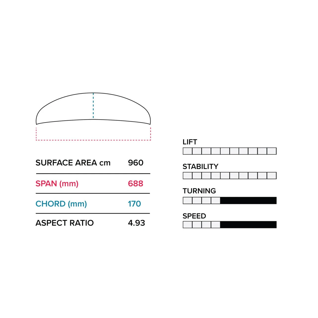 It has tons of lift for surfing wakes as small as a ripple. For Windsurf Foil, the Gamma 68 is an easy entry level wing with low stall speeds that make it great for jibing, even if you bobble a bit. It has great upwind ability and overall stability.