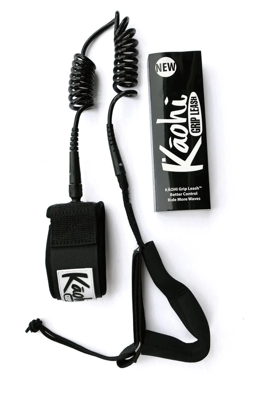 This leash features the Kāohi’spatented “Grip”, which serves as a rail-saver handle that enables you to keep your board close to you in-between sets and in whitewater, and helps you to avoid others in the water and safely return to the line-up. Do not hold on to the Grip handle in the impact zone of any wave, as described in our product Notices; let your Kāohi Grip Leash™ do its job!