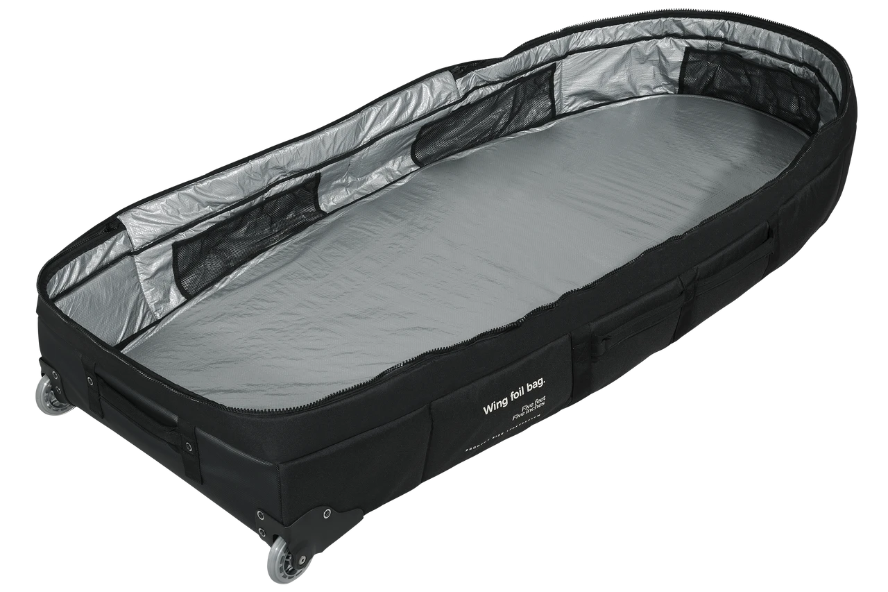 A rigid divider separates your foils from your boards so they don’t damage each other. Finally, soft wheels allow for effortless transport on any surface.