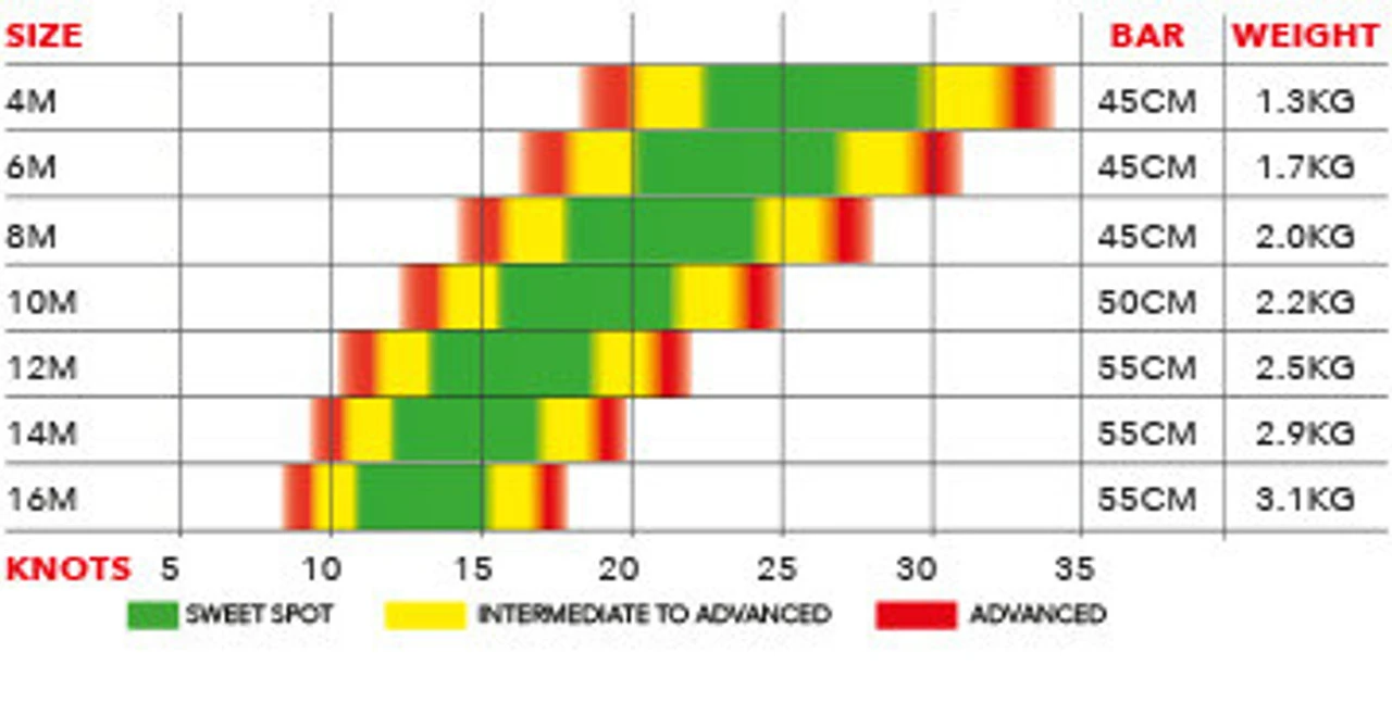 For high wind foiling in chop or waves, take a small size with shorter lines for loads of fun drifting the kite while carving swells across the wind.