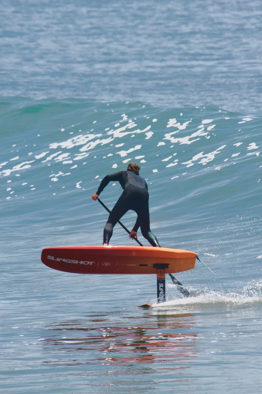 It has the lowest takeoff speed and lowest stall speed in the Slingshot range. With takeoff speeds as low as 6kts the Shred Sled does not require much encouragement from your paddle, wing or sail to get you flying. The beveled rails, kick-tail, and consistent width combine to provide super early release from the water. Once you are up the 99cm wingspan of the FWING gives rock solid rail-to-rail stability and stall speeds of only 3-4kts. This package was built for progression while taking full advantage of even the most meager conditions.